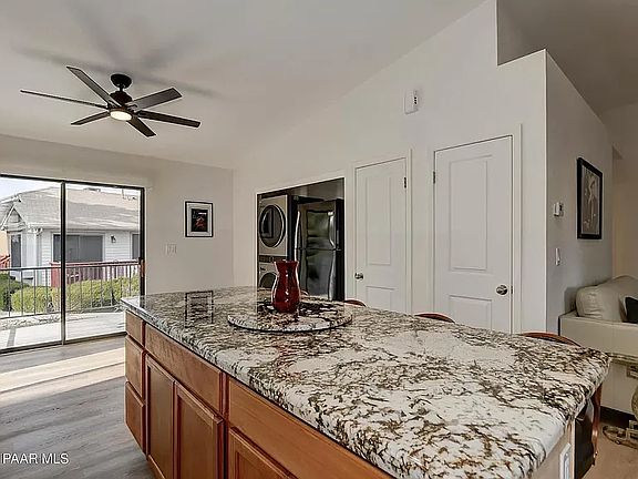 UNDER NEW MANAGEMENT! Enquire today! Property Details 2 Bedrooms 2 Bathrooms ~985 sq ft Fully furnished. End unit condo with vaulted ceilings and abundant natural light Updated interior: new vinyl flooring, fresh paint, and remodeled baths Island kitchen with granite countertops, stainless appliances, and breakfast bar Cozy living area with gas fireplace Both bedrooms with walk in closets. Primary bedroom with in suite bathroom. Private balcony/patio perfect for relaxing outdoors Utilities: Tenant pays. Parking: One covered carport spot; one additional uncovered space Laundry: Full-sized washer/dryer in-unit Pets: May be considered case-by-case; smoking prohibited inside Neighborhood & Location Conveniently located in Prescott's 86301 ZIP code, close to shops, restaurants, grocery, medical offices, and Embry Riddle Aeronautical University Near local schools including Abia Judd Elementary, Granite Mountain Middle, and Prescott High School. Tenant pays for all applicable utilities. Owner pays HOA.