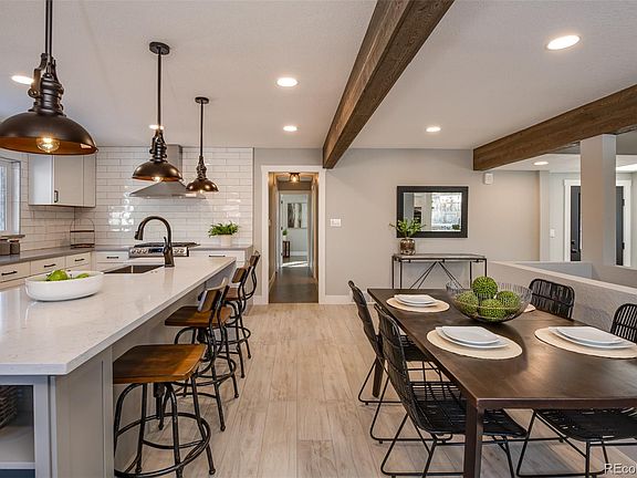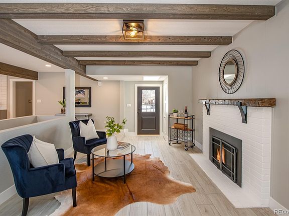 This top-to-bottom modern farmhouse remodel resides on a quiet street in one of Denver's best neighborhoods, Holly Hills. The 4-bedroom, 3-bathroom farmhouse ranch was carefully and tastefully updated and sits comfortably on a .33 acre lot. A spacious main floor balances bright and rustic ranch element. A warm seating area faces a sleek gas fireplace and wraps around to an open kitchen featuring brand new appliances, an expanded kitchen island and black brushed copper finishes. Wide-plank wood tile flooring and incredible hand-hewn mantels reclaimed from a 1800s farmhouse carry throughout the kitchen and dining area. An oversized master bedroom features an updated 4-piece bathroom with double vanities and a luxurious overhead rain shower. The sense of history and adoration is clear from the previous owner, who put a lot of focus into the home to ensure it was exceptional for the next dweller to love. Easy access to parks, schools and transportation add to the value of this home.