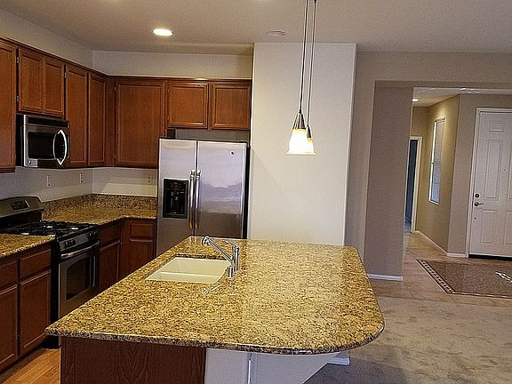Take at look at this charming upgraded single story 3 bedroom 2 bath home in the desirable gated community of Viscaya. The interior's palette of this home is blended in soft neutral tones beginning with the Travertine style tile with beautiful inlay. The well equipped kitchen with island and walk-in pantry features dark wood cabinetry, granite counter tops and stainless appliances which are all included. A large family room and casual dining area are off the kitchen which opens up into an open floor plan into the family room with cozy fireplace! The spacious master suite features a custom upgraded ceiling fan and master bath has his and her vanity with granite counter tops. There are two secondary bedrooms with ample closet space and an indoor laundry room with washer and dry included. The Viscaya Community features a pool, spa, club house and tot lot! Very private low maintenance lot with only one neighbor. Don't miss out, come see this beauty before it is gone!
