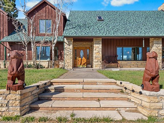 Welcome to your dream retreat in Kiowa, Colorado—where privacy, peace, and panoramic views await. This impressive ranch-style home sits on 40 acres of scenic land, with the rare opportunity to purchase additional acreage, if desired. Located at the end of a quiet cul-de-sac and backing to expansive land owned by John Malone, this property offers an unmatched sense of seclusion while still being just a short drive to town. Inside, you’ll find a warm and inviting living space with soaring vaulted ceilings, fire sprinkler system, large windows that flood the home with natural light, and a incredible floor to ceiling fireplace that anchors the main living area. The open floor plan is perfect for entertaining, and multiple doors lead out to a wraparound porch where you can enjoy your morning coffee, take in the fresh mountain air, or watch wildlife roam. The upper loft is a standout feature—offering bar seating and a large open area with large windows, creating the perfect game room, lounge, or creative space. The home is connected to a spacious three-car garage by a breezeway, offering both function and charm. Above the garage, a large unfinished space is already framed in and ready to be transformed into a guest suite, home office, or additional living quarters. Surrounded by mature trees and perched on a hilltop, this home boasts breathtaking views of the land below. Whether you're looking to establish a ranch, enjoy wide open spaces, or simply escape the hustle and bustle, this property offers the lifestyle and freedom you’ve been dreaming of. This is your chance to own a truly special piece of Colorado—where possibilities are endless and the beauty of nature surrounds you at every turn.