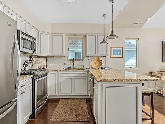 You've found your beach retreat! This three-bedroom, two-bathroom condo has been completely gutted and professionally renovated with comfort and style in mind. Mere steps from the sand, 309B East Raleigh Avenue offers year-round comfort and convenience. Ceramic, wood-look tile in the common areas makes for easy sand sweep-up, and neutral carpeting enhances the bedrooms. The kitchen features new cabinetry and stainless-steel appliances, including a gas range, microwave, a large refrigerator, disposal and a super-quiet Bosch dishwasher. Owners thought of EVERYTHING...the kitchen even includes an Insinkerator "Instant Hot" water dispenser. Owners have replaced the heat/AC this season! The bathrooms are a decorator's dream, and the bedrooms are beautifully furnished (all-new Sherrill furniture in the master bedroom, including a king bed), with custom window coverings throughout, including bedroom blackout shades. You won't want to come in from the lovely, second-floor deck, with comfortable, Sunbrella-fabric swivel rockers with views of both Diamond Beach and Jarvis Sound. A two-car garage includes a secure storage area with another full-sized fridge, bicycles, beach chairs, shelving and a new beach wagon with super-wide tires will make transporting all your beach gear a breeze. The in-ground pool is located directly behind the home, so you can call the kids in for dinner from your bedroom windows! Diamond Beach's private club features a full-service beach restaurant and bar, with live evening entertainment. A special easement means you will get a deep discount on seasonal beach tags in perpetuity. It's all waiting for you...