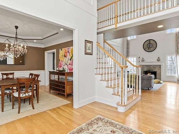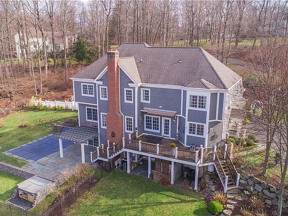Enjoy spectacular sunsets in private setting on cul-de-sac in sought after location of Redding CT. This property boasts 2.5 acres of lush professionally landscaped gardens, cedar shingles, saltwater pool and hot tub surrounded by a beautiful flagstone patio. Inside this classy, immaculately kept and maintained home you have over 5,000sqft of finished living space. Fabulous open concept floor plan, grand ceilings, extensive millwork, and passerelle add special character to this home. The first floor includes beautiful kitchen, living room, formal dining room, his & her offices, music room or den, wood burning fireplace, large windows and French doors to access lovely mahogany deck with staircase down to the pool. The 2nd floor boasts a stunning master bedroom suite w/gas fireplace and high ceilings. Enjoy and relax in this grand master bathroom with spa tub and oversized shower. Walk into a spacious walk-in closet 16x13 with build-in cabinets. In addition, 1 en suite bedroom with walk-in closet and across the interior balcony, bedroom 3 and 4 share a full bathroom. Finally, the laundry room completes the 2nd story. Finished basement provides for a spacious media/rec room as well as gym and full bath. There are sliders that lead to patio and beautiful pergola, pool and hot tub. Just 2 miles from the train station and Merritt Parkway and very convenient for shopping, restaurants and schools.