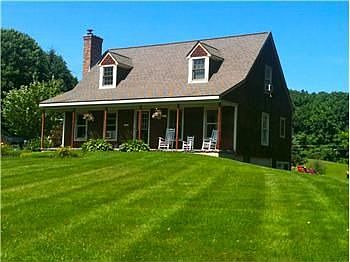 Beautiful secluded cape situated on 2.22 acres, enjoy views of the pond from the stone porch or sit in the hot tub and enjoy the scenery. Lower level finished with French doors and walk out basement with bar. All new appliances.