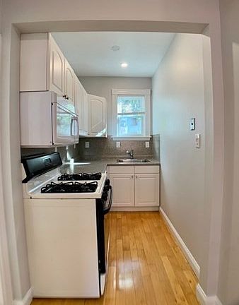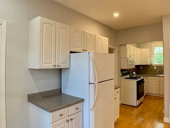 Nicely updated 3 bedroom apartment located in a 3 family style house. Open floor plan kitchen/dining/living room. Bathroom is spacious with plenty of room for storage. Kitchen has gas stove, over-range microwave, garbage disposal, dishwasher, and fridge. Great storage capabilities. Two of the bedrooms are located in the rear of the apartment, one has a door out to the private rear deck. The third bedroom is front facing. There are hardwood floors throughout, and ceiling fans/lights on dimmers in most rooms. A garden plot across the street allows for plenty of sunlight through the front of the house. Each apartment has it's own washer and dryer in the basement as well as storage in the basement. One tandem parking space in driveway. Tenant responsible for utilities (gas, electric and cable/internet.) One (1) cat is okay, NO dogs allowed and no smoking. OCTOBER & NOVEMBER RENT FREE! Application fee $25 per applicant fee/adult applicant.