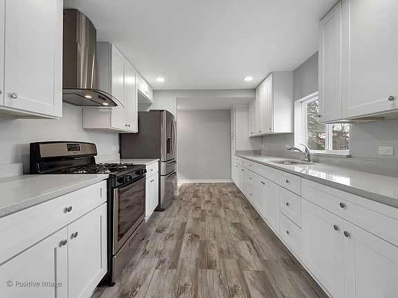 A STUNNING MUST SEE! This 3-bedroom 2 full bath home will surprise you! A large living / dining room, gorgeous kitchen with stainless steel appliances, white shaker style cabinets and quartz countertops. 3 bedrooms with ample sleep and closet space plus the beautifully updated main bath. Gleaming hardwood floors in the living room and 3 bedrooms. There's a ton more space in the full finished basement including the family room with appointed wood burning fireplace with built-ins, a generous bonus room, laundry room and full bath. The HUGE backyard with patio extends your living and entertaining space. Close to Rte. 38, Rte. 59, Forest Preserves, shopping and dining.