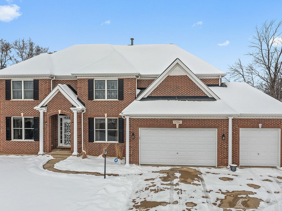 Well maintained and meticulously cared for home in the St. Andrews Estates Subdivision. Full brick, two story home arranged perfectly on almost 1/2 acre cul-de-sac lot! Soaring two story foyer flanked by a formal living room and dining room. There are gleaming hardwood floors that flow throughout the main level. Elegant dining room offers a trayed ceiling and a convenient Butler's Pantry with a sink located between the dining and kitchen area. The family room has a two story ceiling and an abundance of windows helping keep the home light and bright. The cozy gas log fireplace is the perfect area to relax with your family and friends. Gorgeous columns provide separation between the family room and kitchen area. The kitchen offers an abundance of 42" cherrywood cabinets with crown molding and intricate woodwork details and plenty of granite countertop space. Stainless steel appliances including a double oven, backsplash, center island with storage and a walk-in pantry with shelving. The breakfast area has a slider door leading to the two tiered deck which has been recently redone. This is the perfect spot to enjoy your morning cup of coffee! Convenient powder room on the main level along with the mud/laundry room with cabinets, shelving, closet and a utility sink - washer & dryer stay with the home. Large main floor office with a bay window which includes a walk-in closet that can be used as a bedroom. This room backs to the laundry room so a bathroom can easily be installed to provide a main floor ensuite. Head upstairs and you can look out over the Juliet balcony into the family room. There are four spacious bedrooms on the second level including the primary bedroom which includes a double door entrance, tray ceiling, two walk-in closets with built-in's and a private bathroom with two vanities, a jetted tub and separate shower. All three secondary bedrooms have walk-in closets and ceiling fans. There is a jack and jill bath between two of the bedrooms and another full bath in the hall with a shower. Need more space? Head down to the full, finished basement complete with a wet bar and plumbed for a kitchen. There is an additional bedroom and full bath with a shower in the basement as well. The entire home has been recently painted with a neutral color and the wood flooring has been refinished. Both furnaces were replaced in 2022 along with a 75 gallon water heater. Three car garage has an epoxy floor. A gorgeous lot lined on each side with arbor vitae trees. Great location close to golf courses and nature preserves. Be sure and check out our Interactive 3D Tour. This home has it ALL!