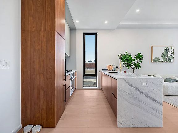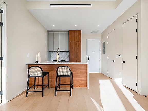 Experience modern sophistication and timeless design at Oasis Astoria. This impeccably designed 2-bedroom, 2-bathroom residence showcases warm wood finishes, sleek stone accents, and soaring ceilings that create an inviting and refined ambiance. The chef-inspired kitchen is a true highlight, featuring a fully vented hood range, fully integrated high-end Bosch appliances, including a 5-burner gas range oven, refrigerator, and dishwasher, all enhanced by elegant quartz countertops and backsplashes. Thoughtful touches include in-unit stacked Bosch washer and dryer, a keyless smart lock entry, radiant heated bathroom floors, smart toilets, custom LED vanity mirrors, and many units with rare and luxurious 4-piece spa-like baths, elevating the home’s unique appeal.