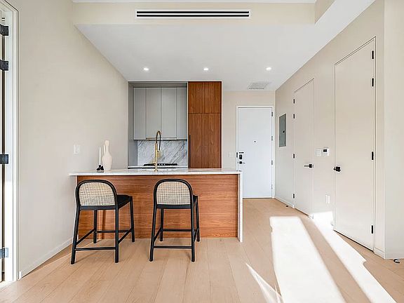 Experience modern sophistication and timeless design at Oasis Astoria. This impeccably designed 2-bedroom, 2-bathroom residence showcases warm wood finishes, sleek stone accents, and soaring ceilings that create an inviting and refined ambiance. The chef-inspired kitchen is a true highlight, featuring a fully vented hood range, fully integrated high-end Bosch appliances, including a 5-burner gas range oven, refrigerator, and dishwasher, all enhanced by elegant quartz countertops and backsplashes. Thoughtful touches include in-unit stacked Bosch washer and dryer, a keyless smart lock entry, radiant heated bathroom floors, smart toilets, custom LED vanity mirrors, and many units with rare and luxurious 4-piece spa-like baths, elevating the home’s unique appeal. Situated in the exclusive Oasis building, home to only 52 boutique residences, this property grants access to an array of exceptional amenities. Residents can relax on a rooftop terrace with stunning Manhattan skyline views, stay active in the state-of-the-art fitness center, and benefit from secure bike storage. With a virtual doorman system, Oasis blends luxury neighborhood, convenience of lifestyle, and peace of mind. Ideally situated between Astoria’s vibrant streets and the peaceful riverfront, Oasis connects you with everything. Convenient public transit options, including nearby Citi Bike stations and the Q69 bus stop, make commuting a breeze. Nearby parks, museums, and cultural landmarks offer endless opportunities for exploration and relaxation. The complete offering items are in an Offering Plan available from Sponsor. File No. CD230206. Sponsor: FBL Astoria LLC, 142-22 37th Avenue 5th Floor, Flushing, New York 11354. Equal Housing Opportunity.