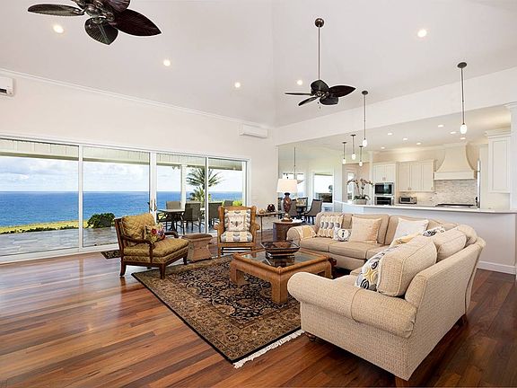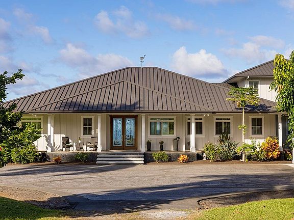 Exceptional features are evident throughout, from Hawaiian Ohia Hardwood flooring to custom coffered ceilings. Features like a security system, a grid-tied solar system backed by a generator & battery bank, & a private well w/ a thorough filtration system contribute to comfort, peace of mind, & low-impact sustainable living.