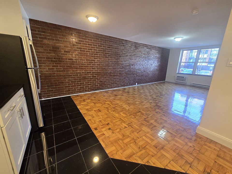 Lots of natural lightHigh ceilingsBeautiful brick wallHardwood floorsLarge windowsKing size bedroom