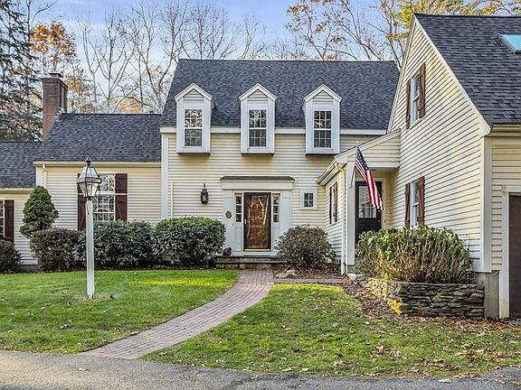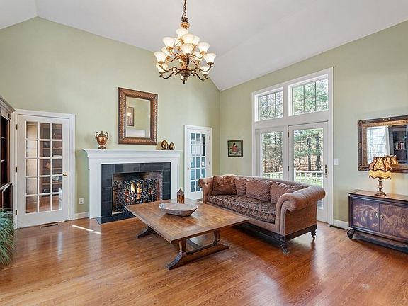 Looking for Value in a changing market? This stunning contemporary Cape set on a knoll gets wonderful sunlight from every angle with large windows, skylights and wrap around decks. NEW Roof in 2020, Furnace in 2023, hardwood floors throughout, open concept living with 1st floor Primary suite, 3 fireplaces and private home office. Large Gameroom above the 3 car garage and a huge, dry unfinished basement for expansion potential and storage with direct garage access! Beautiful level lot with access trail to Stiles Pond!