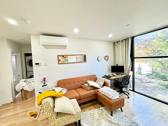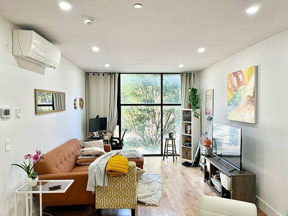 Fully renovated, spacious, bright 2nd floor One Bedroom apartment in a beautiful four story brick building on a quiet tree-lined block in Astoria. In impeccable condition, this apartment with an ideal layout has great light from floor to ceiling windows. Beautiful pristine maple hardwood floors. High ceilings. The kitchen features: LG oven, microwave, dishwasher, and refrigerator, Caesarstone countertops, and large cabinets. LG Washer & Dryer in unit. Energy efficient Air Condition Mitsubishi Electric Splits for both cooling and heating in each room. Quiet block. Convenient to Costco and an endless variety of great restaurants and shops in Astoria, including: Compton's, Parceros Bakery, King of Falafel & Shawarma, Neptune Diner, Rita Oaxaca, Pye Boat Noodle, Sami's Kabab House, etc. Nearby sites include the Museum of the Moving Image, the Noguchi Museum, Socrates Sculpture Park and Rainey Park, both right on the water with dazzling views of the East River and Manhattan. Moments away from the N W Broadway subway station and the Ferry at Astoria Ferry Landing. December 15 or January 1 lease start available.