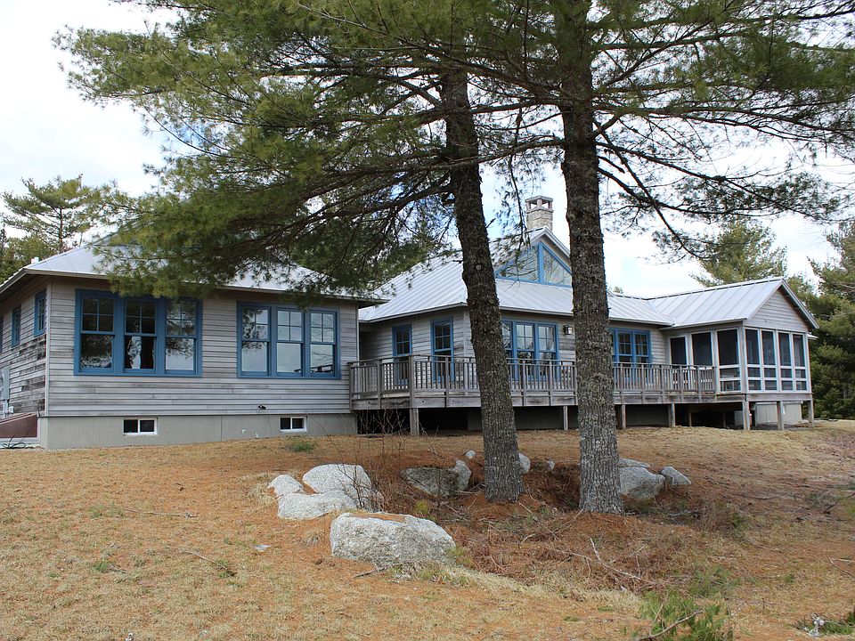 Beautiful architect designed one-level home with views of Schoodic Mountain. Exclusive, gated community on Bailey Mountain, offering bald eagles, nature walks, and expansive views of Mount Desert Island and surrounding salt water bodies from the common areas. Remote country setting only 12 miles from Ellsworth and its major hospital, shopping, and services. Minutes to Acadia National Park and one hour to Bangor International Airport. This 1,950 square foot home with 230 ft of covered and screened porch and 400 ft of open deck space for outdoor entertaining and living enjoyment. With vaulted ceilings in all rooms except the baths and utility rooms, a spacious ambience is generated that encompasses the room dimension and open plan. Enter through the covered front porch into the dramatic living room with inner-wall stone wood burning fireplace and beautiful hardwood floors you will find throughout the living area. Kitchen is to your left with cherry cabinetry and Deer Isle granite counters. The center island and prep space will be a gathering place for family and guest for casual entertaining. The dining area is convenient to the kitchen and living room, with the dramatic fireplace stonework lending a rustic atmosphere to the beautiful window views. There is a half bath off the entry. The master suite with private bath and large closet is off the short hallway with porch and deck access from the living area. Guest quarters with two bedrooms and one full bath are located on the opposite side of the house from the master suite, where the laundry room and utility room are also located, affording lots of privacy for yourselves and guests. Standing seam metal roof, western red cedar clapboards, and high quality extruded aluminum clad windows offer low maintenance. This home has a six foot high basement for storage under the entire home. Broker owned.
