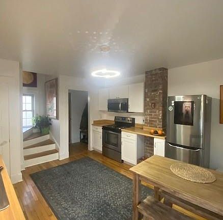 Come and see this very well maintained corner unit in the Historic Seaside Village complex. Recently renovated, it offers hardwood floors throughout, exposed brick, stainless steel appliances, and newer cabinets. First floor bedroom can also be used as a living room. This unit boasts additional space with pantry/mudroom leading to wonderful outdoor space waiting for your green thumb to add your personal touch. A full bath is on the main level with combo shower/tub. Second level offers wonderful open space, recessed lighting, high ceilings and can be used as a bedroom, rec area or office. The choice is yours! Please be advised this is owner occupied only and cannot be rented. Board approval required and cash buyers are preferred. Best and final offers due by noon Monday 2/21/2022