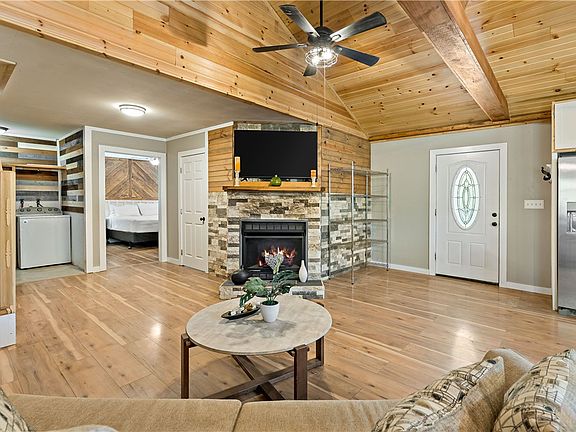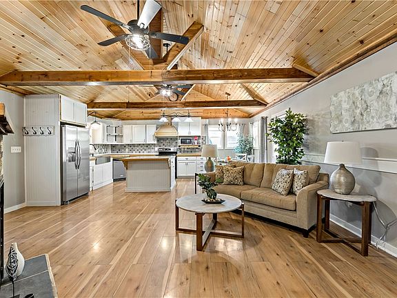 This charming home has everything you're looking for! An open & bright living space with vaulted ceiling greets you from the covered front porch. A cozy living room with gas fireplace joins the updated kitchen. In the fully equipped eat-in-kitchen, find white cabinetry, stainless steel appliances & farmhouse sink, tile backsplash & center island with butcher block top. Additional access to outside is right off the kitchen. The primary bedroom with walk-in, an updated full bath & laundry finish the main floor. Upstairs has two additional large bedrooms with storage. Other details are stunning woodwork, shiplap walls, updated public water & detached garage with electric. Situated on a private, expansive lot with stream access. Enjoy all 31 Anderson Ave has to offer & make this one yours!
