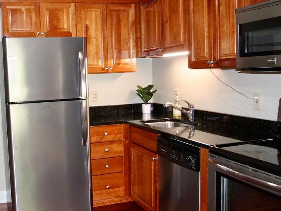 Nice 2 bedroom garden style condo for rent. New kitchen with stainless appliances & granite countertops. Updated bathroom. Nice size bedrooms. Quiet area, near Stark Park in Manchester's North End. Sit on your deck and listen to the river near by, seasonal view of the river from the deck as well. Storage unit. Heat, hot water, plowing & trash removal included in you rent. Tenant responsible for electric & cable. Laundry available in the building. No smoking. No pets. 1 year lease. 1st months rent & sec. deposit required.