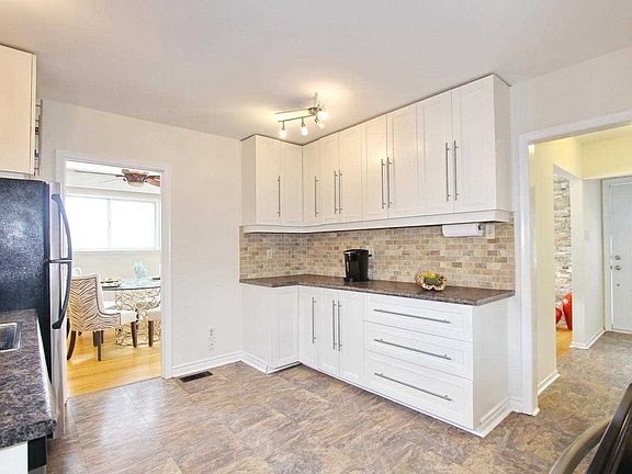 Wonderful 3 Bedroom Bungalow On A Quiet St Backing On Green Space & Park. Lots Of Upgrades.Spacious Modern Kitchen With Imported Laminate Floor.Upgraded Bathrooms. Lots Of Storage. New Roof/Shingles 2018. Garden Shed And Large Patio. Beautiful Stone Feature Wall In Living Room. Custom Design Interiors/Feature Walls.