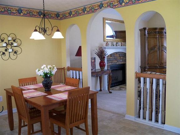 Fantastic Floor Plan with TONS of space! 4 bedrooms/3 full baths. Great room with cathedral ceiling and stone fireplace. Large master with double trey ceiling and his and hers closets. Double vanity and garden tub in master bath. Two other bedrooms on this level with great closet space. New stainless steel appliances. Kitchen with family eating space. Located on prime lot in cul-de-sac which showcases the professionally landscaped front yard. Deck overlooking large yard offers plenty of room for entertaining or relaxing. This home has all that you could want and more!