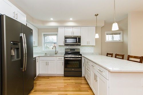 INCREDIBLE SINGLE FAMILY IN REVERE. This sun-filled 3 bedroom home has undergone lots of upgrades and is ready to move in. So many things are brand-new; new roof, new siding, new windows, new kitchen, new floors, new plumbing & electrical, new driveway, even a new HVAC system. The chef's kitchen is equipped with granite countertops, custom cabinetry, and General Electric stainless steel appliances. You will love the open floor plan- its perfect for entertaining. Upstairs you have 2 spacious bedrooms with lots of closet space and 2 updated full baths. The yard is perfectly manicured with shrubbery and a new fence. You even have a small patio in the back yard. Conveniently located by the legendary Kelley's Roast Beef, Route 1, and Revere Beach is 0.3 miles away. THIS HOME WON'T LAST.