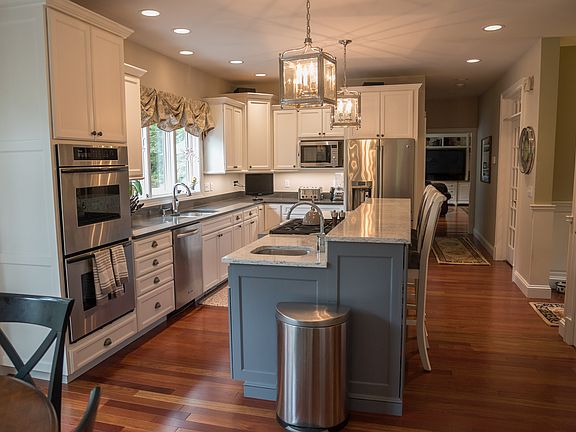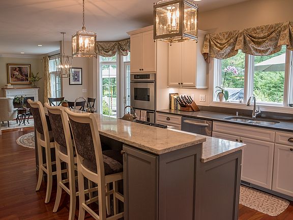 Extraordinary custom built 4 bedroom farmhouse colonial on 3+ park acres. Inviting front porch welcomes you home. Greeted by the two story foyer, formal dining room, and office. Completely renovated kitchen with Wolf 6-burner gas stove and all stainless steel appliances. Formal living room has a versatile layout and gas fireplace. Family room boasts custom molding, built-in cabinetry, and french doors to over sized deck. Hardwood floors throughout the main level. Magnificent master bedroom has spacious master bathroom with walk-in shower, jetted tub, and adjoining cherry finished dressing room with ample space. Two generous sized bedrooms have newer carpeting and nice sized closets. Oversize forth bedroom has cathedral ceilings and large bay window. The multi-tiered deck and patios complete this home. Mahogany decking leads to the wonderful heated gunite pool with waterfall, expansive patios. cozy gas fire pit, relaxing private gazebo and elaborate landscaped yard. Additional 2 car detached garage/carriage house has over 800+ unfinished sq footage. Custom mill-work and draperies throughout. Home is equipped with whole house generator, stereo system, and Sirius satellite radio. Don't overlook the attention to detail in this over 4,000 sqft home. Quaint and quiet country road borders Huntington State Park and perfect down county commute.