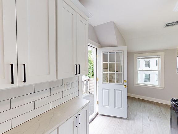 Beautifully renovated, top floor, 2 bed 1 bath apartment with quartz counters, stainless steel appliances, gorgeous tile bath with walk-in shower, original hardwood floors, laundry and storage in the basement, private deck, central AC and 2 outdoor parking spaces included in the rent!