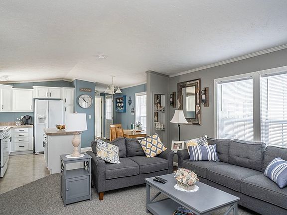 What's not to love - beautifully updated 2 bedroom 2 bath manufactured home is located in Pine Hill Estates, a 55+ community in Raynham. This stunning 16' wide home lives large and features an open concept living area with bright white cabinetry, new appliances and more! Other recent improvements including new gas water heater, new dishwasher, new micro/hood, carpeting and painting thru out. Primary bedroom is ensuite with a 60 " walk in shower and a walk in closet. All appliances including washer and dryer will remain with the home. Large covered porch, central air conditioning and a storage shed make this home the perfect find for your retirement home. There's nothing to do - just move!