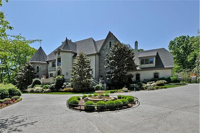 Come home to your own castle on gorgeous 3.32 acre setting in private Forest Hills gated community! Distinctive two-story library with circular staircase adjoins gameroom with coffered ceiling, skylit conservatory, elevator, pool. A gardener's dream.