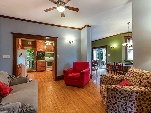 Welcome to 31 Bay St. Don't let this charming cottage exterior fool you this property is much larger then it appears. Situated on this fully fenced oversize lot close to everything this property features 5 Bedrooms and 2.5 Baths. with parking for 4. The large covered porch is what you expected for the age of this home but as you enter you see all the detail and charm with the exposed brick and 9ft ceilings and beautiful trim work. Main level features 2 eating spaces off the kitchen as well as 2 sitting areas. Also we have 2 Bedrooms and full bath on this floor. With 3 rear access doors to the rear yard from the back of the home. The second level has a spacious master bedroom and sitting area ideal of an office space and complete with a full bath. The lower level has 2 bedrooms and half bath and fair size rec room with patio doors to the rear yard. with R2 zoning this would make an ideal rental space or in-law suite. Come fall in love