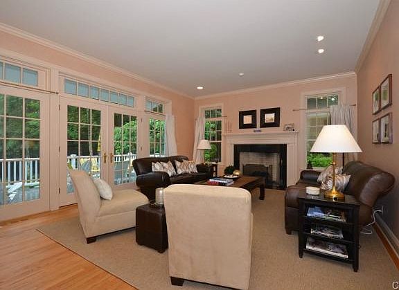 Special in every way, this stunning custom designed 6500SF classic has it all. Just one mile to town, on a quiet cul-de-sac, it is sited on 2.67 acres adjacent to 5 acres of land trust. Great open floor plan w/tons of French doors, built-ins galore, 4 fpls and finished walk out lower level. The spectacular gourmet kitchen w/enormous eating area and grand size island is fresh and exciting. Sensational 2 story family room is warm and inviting w/French doors to beautiful terrace. A rare find!