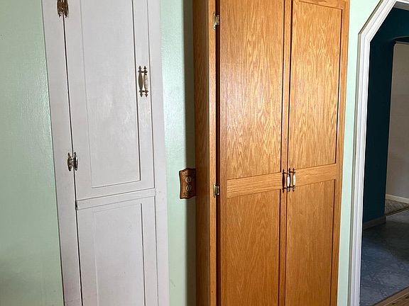 Don't let the front of the house fool you. This four bedroom one bath home has plenty of room and lots of closets. One bedroom has been used as an upstairs laundry with lots of cabinets and counter space. There are closets in almost every room of this home and quite a few neat built ins. The master bedroom has two closets and a lovely window seat. The kitchen not only has beautiful hardwood floors and ceiling, it also boasts a breakfast bar that looks out to the backyard and lilac trees. The living room has a closet and also two built in shelving units for books, DVDs etc... Remote controlled blinds have been added to the living room windows. The large, professionally done dry basement with a sump pump system, makes this the perfect place for a pool table or extra large living space. The basement also has a dedicated area with work benches and tool storage. There is also a one car detached garage with plenty of room for shelving and some storage space.