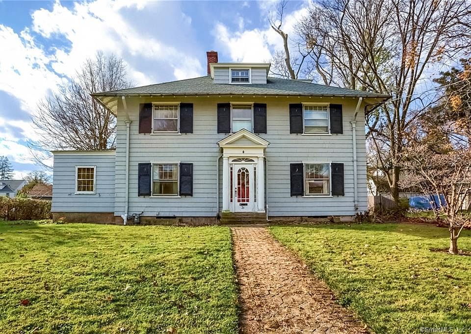 Classic center hall colonial built in 1916 includes period details and old world craftsmanship. Family owned for over half a century. Well preserved and ready for a new beginning, this gracious 2909 square feet home with generous ceiling heights includes 5 bedrooms and 3.5 baths. The front to back living room, with wood burning fireplace, has stained woodwork details and two sets of French doors that open to the expanded sun room/den. The formal dining room boast a decorative glass window, and stained woodwork details that expands to butler’s pantries, the kitchen, another pantry, and the porch beyond. The home includes a front hall stair and a private back staircase to the second floor. The second floor includes 4 oversized bedrooms, one with additional bonus space, and two full baths, one as part of the master suite. The third-floor suite includes the fifth bedroom and another full bath with tub. Hardwood floors throughout. Gas heating and hot water. Lot is .34 acres with a flat back yard for entertaining and includes a 2-car detached garage and concrete driveway. Walking distance to Whiting Lane Elementary School. Minutes from the West Hartford Center and Blue Back’s restaurants and shops, the shops on Park Road, Elizabeth Park, and downtown Hartford’s businesses, museums, and the Connecticut River’s waterfront. Easy bus and highway access to Union Station, I-84, Bradley International Airport, and only 2 hours away from Boston or New York. Property is an Estate and will be sold "AS IS" with Inspections for Informational Purposes Only.