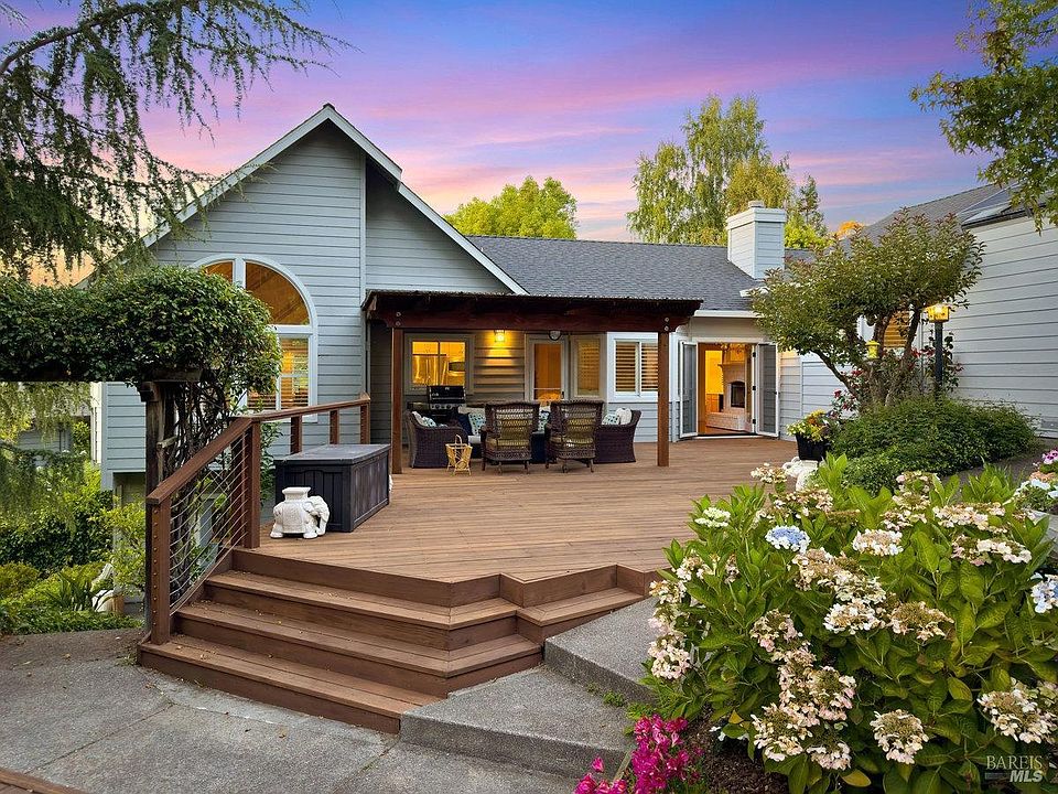 Located on a serene cul-de-sac in the coveted Peacock Manor section of the Peacock Gap neighborhood, this impressive custom home boasts an expansive, private half-acre lot & a spacious, well-proportioned floor plan with high ceilings & large-scale social living spaces. The dramatic light-filled living room features a 2-story ceiling & leads to the formal dining room offering beautifully refinished mahogany hardwood flooring. An open great room adjoins the kitchen with newly installed quartz counters & features open beamed ceilings, a fireplace, & built-in cabinetry; a fantastic space for relaxing & entertaining. This great room opens out to the expansive deck to enjoy the fabulous backyard oasis.The main level also offers a spacious powder room & 2 bedrooms that share a dual bathroom. The sophisticated primary suite with sitting area, 2 walk-in closets and luxurious primary bath is located just steps up from the main floor. Prepare to be amazed at this dream backyard with spacious decks right off the main living area, landscaped gardens, & inviting areas for relaxing & outdoor activities. Summer in your own private backyard oasis! Live the Marin lifestyle in the gorgeous Peacock Gap custom house. All this & the desirable San Rafael weather make this truly a rare find!