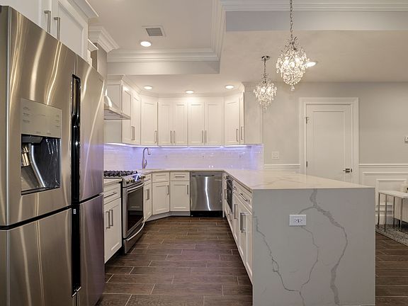The best new construction in Jersey City. This 2, 485 sqft eloquently designed, expansive space has 3 large bedrooms with full en suite baths, plus a guest half bath. large living room, family room, and dining, plus deeded back yard. This grand duplex, is perfect for a large family, extended family who need to have no stairs. The all white chef's kitchen offers professional grade appliances, with vented hood, under cabinet, Bosh microwave, and solid Quartz counters with waterfall island in Calcutta marble design. Dramatic finishes: 10 ft. ceilings. 8 ft. solid wood doors. solid oak flooring. LED recessed lighting. Custom light fixtures. 8 in. crown moldings. 8 in. base boards. Chair railing and wall moldings. Built-in closets. Full size Samsung washer and gas dryer. Security cameras and alarm system.