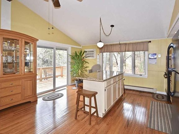 - Kit Dscrp: Flooring - Hardwood, Countertops - Stone/Granite/Solid, Deck - Exterior, Ceiling - Cathedral, Breakfast Bar / Nook, Closet/Cabinets - Custom Built, Kitchen Island, Open Floor Plan, Remodeled, Slider, Gas Stove
