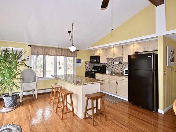 Step inside to this lovingly cared for 3 Bedroom, 2 Full Bath, split level home boasting pride of ownership. Heated by Gas, with an open and airy feel, this home is centered around the cathedral kitchen-dining area complete with granite countertops, large island with breakfast bar & gleaming hardwood floors. Full front facing deck allows the family gatherings to overflow outside with distant views of Glen Charlie Pond. Master bedroom with attached full bath & claw foot tub has plenty of storage awaiting you. Another full bath tiled with tub & shower & tile flooring, completes the 1st floor level. Awaiting you on the finished lower level is a spacious family room, 2 more bedrooms, large hearth with wood stove for those chilly nights & laundry facilities. Walk out to the covered lower level front deck with views of the pond in the distance. Well manicured, good sized yard with mature plantings. 2 driveways will accommodate up to 8 autos.