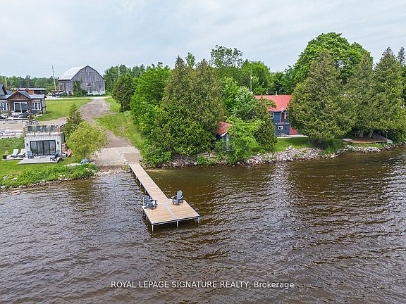 Introducing this stunning 2500 sq ft solid brick farm house, nestled on a picturesque 1.5 acre property with 34 feet of waterfront on the highly desirable Cameron Lake on the Trent Severn waterway. The charming residence offers a tranquil retreat with it's weed-free sandy wade in beach & private dock, providing the perfect setting to indulge in lakeside living. Step inside this fully renovated gem, where modern upgrades seamlessly blend with the farmhouse charm. The spacious interior boasts 5 bedrooms, 2 baths, providing ample space for family and guests. The newly updated eat-in kitchen is a culinary enthusiast's delight, featuring stainless steel appliances, stylish cabinetry & a functional layout that is both practical & aesthetically pleasing. The bathrooms have been tastefully upgraded, showcasing a clawfoot tub & separate shower, offering a luxurious escape. The highlight of the house is the expansive living, family room combo thats a true entertainers dream. With it's generous size, open concept and propane fireplace, this space creates a warm & inviting atmosphere for gatherings & memorable moments. Indulge in the multiple walk outs to several decks & a winterized wrap around porch that is drenched in natural sunlight with breathtaking views. The property also features a separate barn, which includes an oversized entertainment room where you can watch movies from the projector & screen, play video games or hang out by the custom raw edge wood bar, & garage parking space. To top it of, the property welcomes you with custom iron gates that lead to the gardens & a well-maintained landscape, adding to the overall appeal & privacy of the property. This exceptional brick farm house offers a unique opportunity to embrace both the tranquility of lakeside living & the charm of a fully renovated farmhouse. Don't miss the chance to make this your dream home. Minutes from beautiful Fenelon Falls, shopping, restaurants, groceries & LCBO. Many updates see attachment.