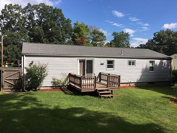.Well maintained ranch in great neighborhood. Home offer 2 bedrooms, good size kitchen, Hardwood floors . Roof has been updated, replacement windows, vinyl siding. Great fenced back yard. Gardens, storage shed. The basement has 2 finished rooms along with plenty of storage. New energy efficient Hybrid Hot Water Heater. MASS SAVE went thru house a few years ago and insulated attic. Very well insulated home. Average electric bill was between $100 and $150 when owners father living in house. 1 Car attached garage. A great house at a great price. Pellet stove in living room heats the house effectively. Use approximately 2-3 ton of pellets per year.