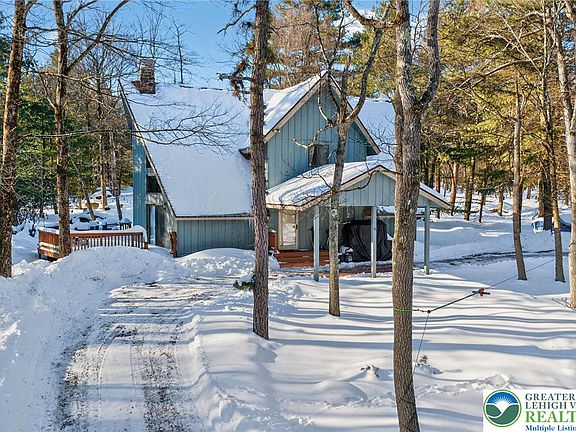 Welcome to this beautifully updated 4-bedroom, 2-bath retreat located in Lake Harmony within Split Rock Resort, one of the Poconos’ most desirable short-term rental–friendly communities, offering excellent income potential. Set on a corner lot with a rare drive-through circular driveway, this 2,012 SqFt home seamlessly blends comfort, style, and functionality. The interior features vaulted ceilings, floor-to-ceiling windows that flood the space with natural light, and a stunning stone fireplace with propane insert that anchors the main living area. The updated kitchen is equipped with stainless steel appliances, ample cabinetry, a pantry, and flows effortlessly into the dining and living spaces—ideal for entertaining. Recent improvements include all new flooring, a brand-new bathroom, a newer roof, and a new whole-home water filtration system. Thoughtfully designed, the home offers two bedrooms on the main level, two additional bedrooms upstairs, a loft, built-in shelving, and abundant closet space, comfortably accommodating up to 12 guests. Outdoor living is enhanced by a covered front breezeway, side deck/patio, fire pit storage shed, and even a tree house, creating a true mountain getaway experience. Located just 1 mile from Pocono Raceway and minutes from skiing, golfing, dining, beach, and year-round recreation, this property is perfectly suited as a primary residence, second home, or high-performing investment opportunity. Call today to schedule your own private tour!