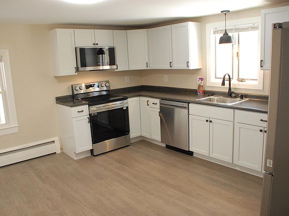 Great location, easy access to Routes 89 And 93 as well as back roads to Manchester. New kitchen and bath, finished 2 car attached garage short walk to schools and community center. There is access to the very large back yard from the basement door as well as a deck behind the breezeway. The lot is just under 3 acres and abuts the Bow School Forest.