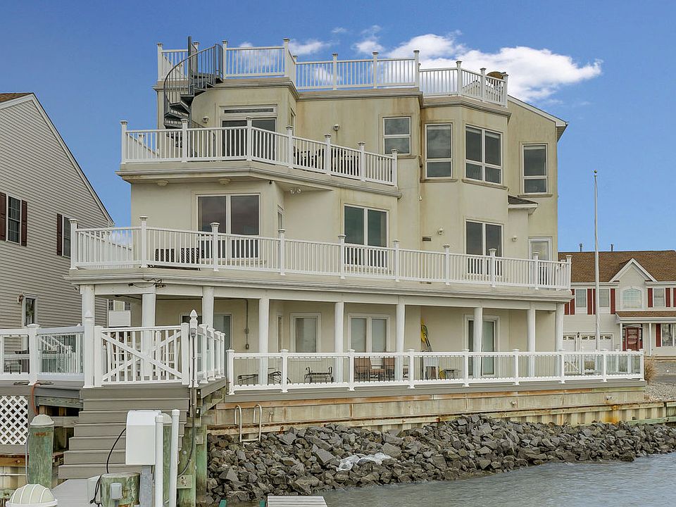 Bayfront premium location on a peninsula with sun soaked multi tier decking including panoramic unobstructed rooftop deck views of Barnegat Bay, Island Beach State Park & wildlife preserve. Extensive composite dock with 2 boat lifts and attached deck with glass railings. This property has plenty of space for everyone with 2 living areas and a split style home if desired and bonus room on ground floor not included in square footage. Sliding doors and huge windows allow for lots of natural light! Eat in kitchen with stainless steel appliances and granite counter-tops. Elevator, Recessed lighting, custom ceramic flooring, custom layout, and beautifully designed tiled bathrooms with Southern light exposure .