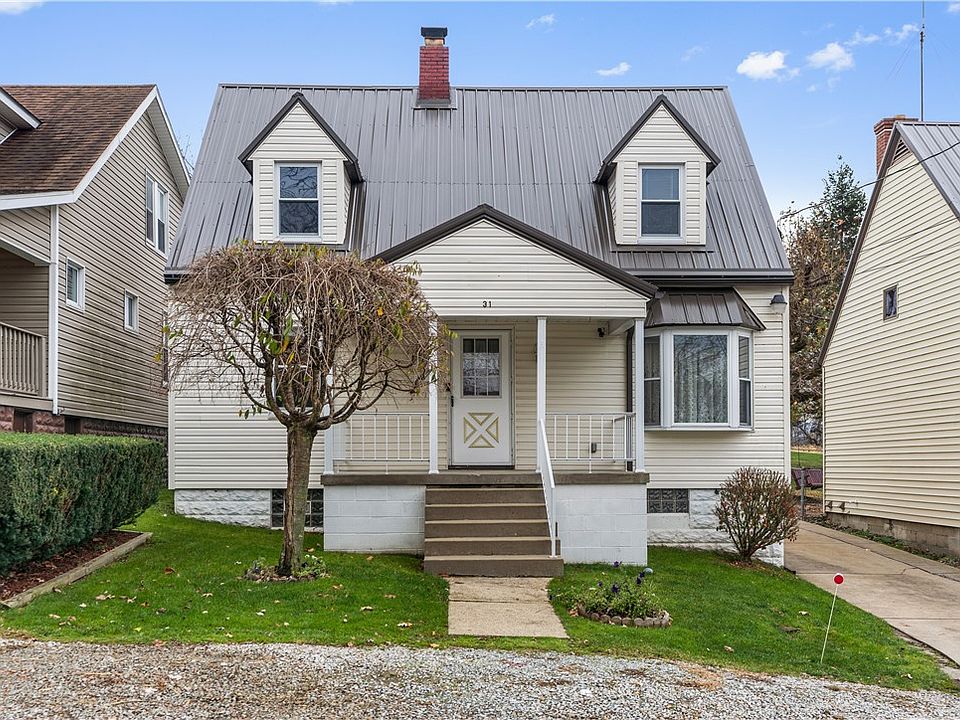 Welcome to 31 Bradbury. This well maintained 3 bedroom, 2 full bath, has lots to offer. Beautiful hard wood floors in the dining and living room. Master bedroom on the main floor with en suite and jacuzzi tub. Galley kitchen with back door that leads to the covered porch. On the upper level you'll find two large bedrooms and a full bath equipped with a ceiling heater for those cold days. Full basement with tall ceilings. Extra rooms for storage. Let's not forget about the NEW metal roof, two car insulated garage, and fenced in yard. This is one you don't want to miss!