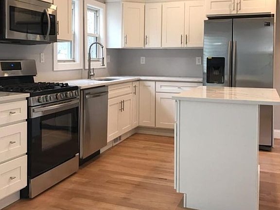 Stunning New Fully Renovated Single Family Home Located Within 10 Minutes Walk To Mansfield Train Station & Center This Complete Top to Bottom Renovation Include New Elec Wiring & Circuit Breaker, Plumbing, Insulation,Walls & Windows, New H/W Floors Throughout, Two Separate Unit/Two Zone Central Gas Heat and A/C,Architectural Shingle Roof & Vinyl siding, Attached 2 Garage W / Brand New Doors / Door opener! This Amazing Single Family Offers 8 Rooms 4 Spacious Bedrooms, Walk-in closets & 2 1/2 Bath includes ensuite Master Bedroom With Cathedral Ceiling On The 2nd Floor, Elegant White Kitchen Cabinets & Quartz Countertops With Large Island, Brand New Stainless Steel Appliances (Gas Range, Microwave, Dishwasher, Fridge with Icemaker), Recessed Lighting In The Open Floor Plan Living/Dining Kitchen Area With Sliding Door Access To Large New Composite Wood Deck, Over a 1/3 Acre Of Level Fenced Yard With Access To The Bike Path! EASY TO SHOW, PRICED TO SELL, DO NOT MISS ON THIS PROPERTY.