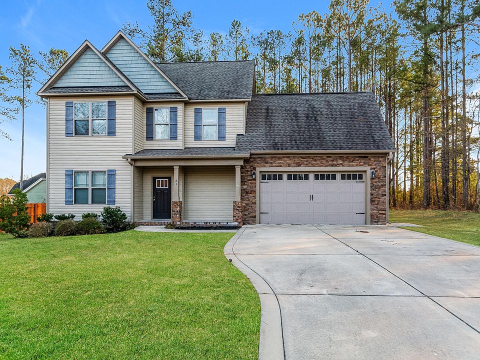 Wow! This amazing 2018 Built home sits on nearly half an acre. At just under 2000sf with 4 bedrooms and 2.5 baths, it boasts granite counter tops, dark colored cabinets that match the counters very well, LVP flooring through the ground floor, and wainscoting in the dining area. Sitting on a cul-de-sac, this is a great home whether you are a first time buyer, upsizing, or even downsizing. Check it out today!