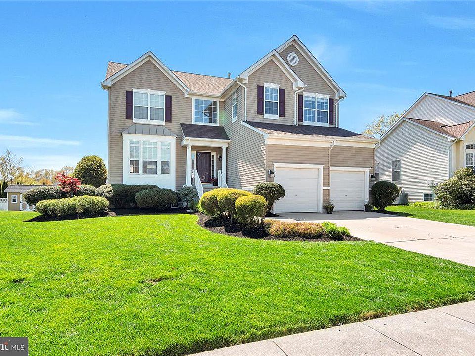 Come and see this amazing four bedroom home in the widely adored Woodlands neighborhood in Marlton. Its prime location near major highways, coupled with the well-maintained community boasting stunning homes, makes it highly desirable. Take, for instance, the charming Crofton model – a true gem in this area. Upon arrival, you're greeted by a meticulously manicured lawn and professional landscaping, setting a picturesque scene. A spacious double-wide cement driveway leads to a convenient 2-car garage, while a covered front porch shields you from the elements. Inside, natural light floods through strategically placed windows, creating a bright and inviting atmosphere. Hardwood flooring, lofty ceilings, and neutral painted walls with elegant white wood trims provide a timeless backdrop for any décor style. The open-concept layout seamlessly integrates a striking turned staircase with a balcony overlooking the foyer, generous rooms for formal gatherings, and a sprawling island kitchen. Adorned with updated cabinets, granite countertops, tiled backsplash, and stainless steel appliances, the kitchen truly becomes the heart of the home. Adjacent to the kitchen lies the impressive 2-story fireside family room, boasting a wall of windows offering serene views of the backyard. Completing the main level are a convenient powder room and a laundry room equipped with a washer and dryer. Upstairs, neutral carpeting adorns the hallway and bedrooms, including the luxurious owner's suite featuring a walk-in closet and private bathroom. Three additional bedrooms and another full bathroom round out this level. But the delights don't end there – the fully finished basement offers ample flexible space, including an extra bedroom/bonus room with a half bathroom. Storage is plentiful in the unfinished portion of the basement. Outside, a vast custom deck and fenced-in yard provide ample space for family and pets to enjoy. New roof installed in 2017 with cost-saving solar panels included, this home is as economical as it is inviting. Situated in Evesham Township with its top-rated schools, and boasting close proximity to Philadelphia and the shore points, as well as local eateries and trendy shopping spots, this property is sure to be snapped up quickly. Don't miss your chance to call it home!