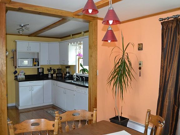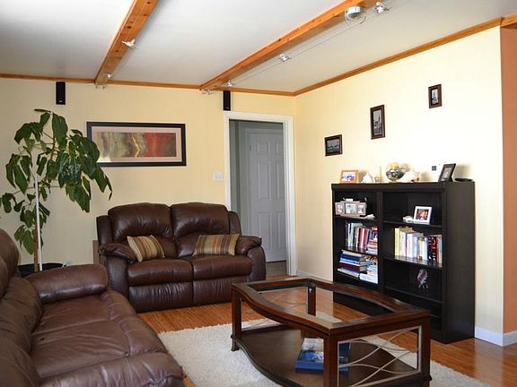 Beautifully remodeled split level in-town home with large, fenced-in backyard, must see. Top level, three bedrooms and full bath, main level entrance is a tiled foyer, updated kitchen, open living room/dining room with pellet stove. Daylight ground level, half bath, laundry, bonus room for guest bedroom, office, or den. Large organized workshop for projects. Sidewalks make travel easy, conveniently near town shops, library, schools, post office. Manicured lawn, plenty of space for garden or outdoor fun.