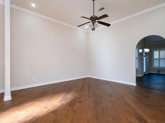 Beautiful custom iron front door to a well maintained one level home on large fenced cul-de-sac lot. Tall ceilings, lots of windows and new wood floors thru-out. Updated appliances in the kitchen opening to spacious hearth room with casual dining and deck access. Great split floorplan with two guest BDRMS sharing hall bath and one guest BDRM and bath off kitchen. Large Primary bedroom suite with wall of windows and new tile flooring in the lovely spa bath. Covered patio as well as large deck overlooking the fully fenced backyard. Come See!