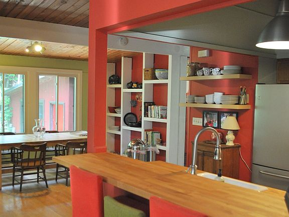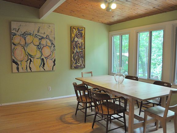 Eichler inspired Contemporary (Modern) Ranch. 5/6 Bedrooms, 3 full Baths. Sunny, airy, open floor-plan & walls of windows bring the outdoors in. Features beautiful high beamed ceilings, HW Floors, central air, and many updates including Kitchen & Master Bath. Wooden Deck overlooking private, fenced-in backyard with play areas and garden nooks. Family Room on it's own level is a possible 6th BR. Convenient location. Easy commute to NYC Neighborhood Description Easy Access to Green Meadow Waldorf School, Local Organic Farms, Local Food Co-op, Shopping, Easy Commuter Options to NYC. Close to NJ Border