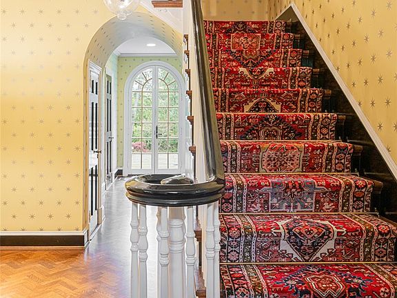 A masterwork of Georgian Revival elegance, this distinguished Biltmore Forest estate is a rare Asheville treasure of enduring beauty and provenance. Set on 3.32 acres near the Cedarcliff Gate of the Biltmore Estate, the residence was designed in 1927 by renowned Beaux-Arts architect William Lawrence Bottomley, one of his few Southern projects and a testament to his mastery of scale, proportion and grace. The classic brick façade opens to interiors rich with preserved historic detail, including quarter-sawn oak herringbone floors, leaded glass, original moldings and star-shaped light fixtures. Gracious formal rooms with wood-burning fireplaces flow with balance and symmetry. The restored living room opens through French doors to the gardens, while a cozy library with original bookcases offers an intimate retreat. A thoughtfully reimagined butler’s pantry preserves historic integrity while supporting modern living. The kitchen blends charm and function with granite countertops, double islands, upgraded appliances, and seamless flow to the family room and rear patio. Upstairs, the original layout has been transformed into generous suites, including a primary wing added in 1984, with additional guest quarters above the garage. Thoughtful updates such as slate roof, generator, HVAC zones and restored hardwoods ensure comfort without compromise. The grounds complete the offering with formal gardens, open lawns, a fish pond, woodland paths and refined landscape lighting.