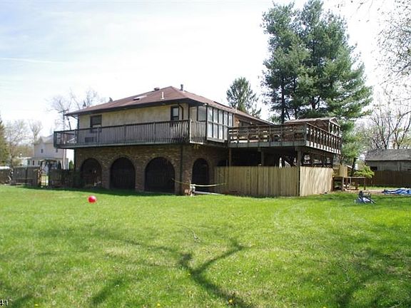 . POSSIBLY ONE OF THE LARGEST HOMES IN THE NEIGHBORHOOD, WELL BUILT CUSTOM HOME ON 1/2 ACRE CORNER LOT. FEATURES OPEN FLR PLAN WITH CATHEDRAL CEILINNGS LV & KITCHEN WITH MOTORIZED SKYLIGHTS. BUILT-IN SPEAKERS IN LIVING ROOM WALLS AND OUTSIDE DECK WALL. REAR DOOR LEADS TO 18X15 DECK WITH HOT TUB. DECK OVERLOOKS BACKYARD AND POOL. All bedrooms have sliding doors leading to wrap-around deck. Master Bedroom features walk-in closet, full bath, and unique greenhouse room. Ceiling fans throughout plus central air. Property is very private fenced around, above ground pool, hot tub, green house, wrap around deck and very close to Lincoln Park Train Station for easy commute to NYC. Flood Ins. required, needs repairs.