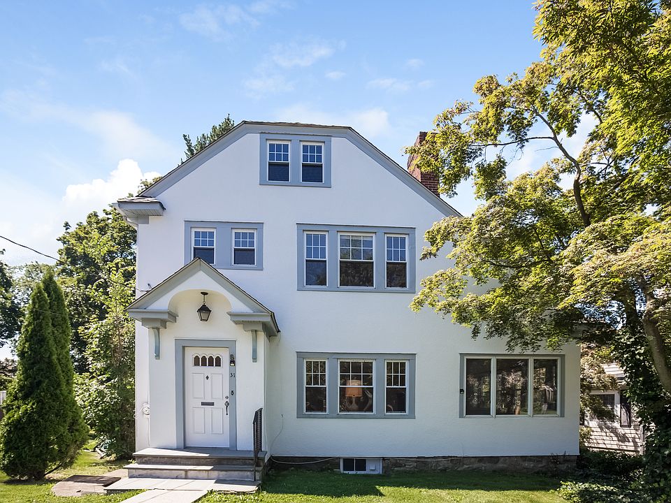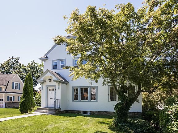 This 3 bedroom side hall colonial will charm you as soon as you enter. The first thing you notice is the bright and light feeling in every room. The first floor boasts spacious living areas and original details. This wonderful home has been freshly painted and the hardwood floors on the first floor stained and refinished. The living room with wood burning fireplace is cozy. You will be delighted by the French doors at the entry of the formal dining room. Here you will find built-in cabinetry and a new large deck with stairs to the backyard. The eat-in-kitchen is ample with a large jalousie window to allow in the breeze. A powder room and large den/family room completes the first level of living space. Upstairs is just as bright and airy and you will find two bedrooms, a full bath, and a master bedroom with half bath and sleeping porch. 30 minutes to Manhattan.